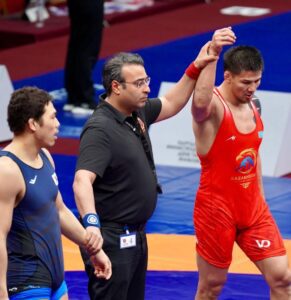 86 келіде өнер көрсететін отандық балуан белдесудің алғашқы минуттарынан-ақ басымдықты өз қолына алып, белдесуді 12:2 есебімен аяқтады.